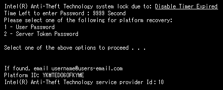 “Intel(R) Anti-Theft Technology system lock due to: Disable Timer