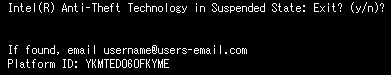 “Intel(R) Anti-Theft Technology system lock due to: Stolen Message